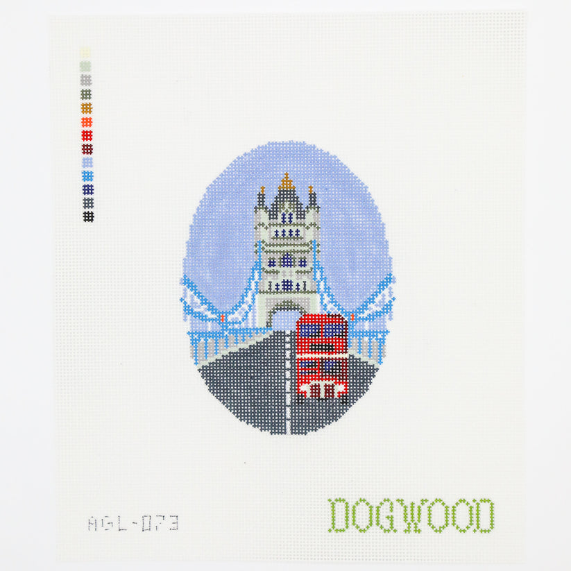 AGL-073 Tower Bridge, 18 mesh, Handpainted by Dogwood Needlepoint, Design Size: 4 x 5"