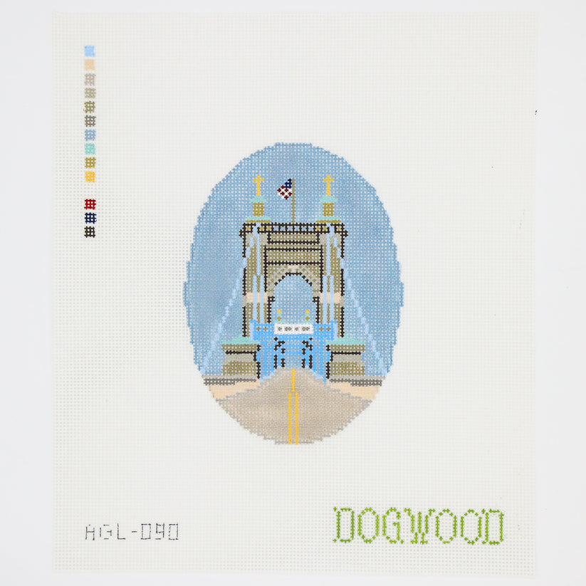 AGL-090 Roebling Bridge, 18 mesh, Handpainted by Dogwood Needlepoint, Design Size: 4 x 5"
