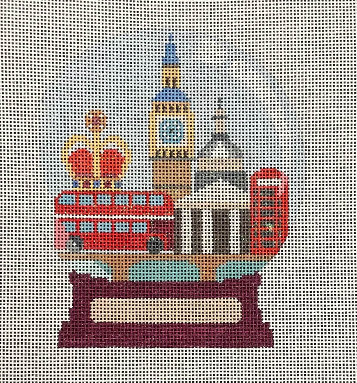 AL-066 London Snow Globe, 18 mesh, Handpainted by Amanda Lawford for VNG Canvas, Design Size: 4.5 x 5"