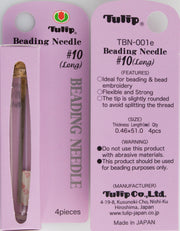 Japanese-made Tulip beading needles are both super-thin and strong. Tulip needles resist bending and breakage. Pack of 4 needles. Storage tube included