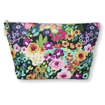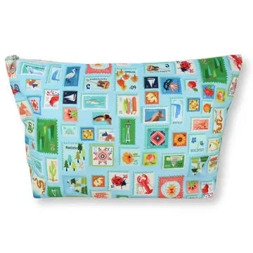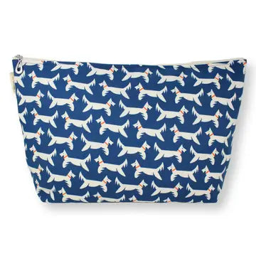 Perfect for anything you want stored away in a cute printed bag! Measures 8.5" x 13". Spot clean outside, wipe out inside. Features a cotton print lining and layer of plastic for easy cleaning.