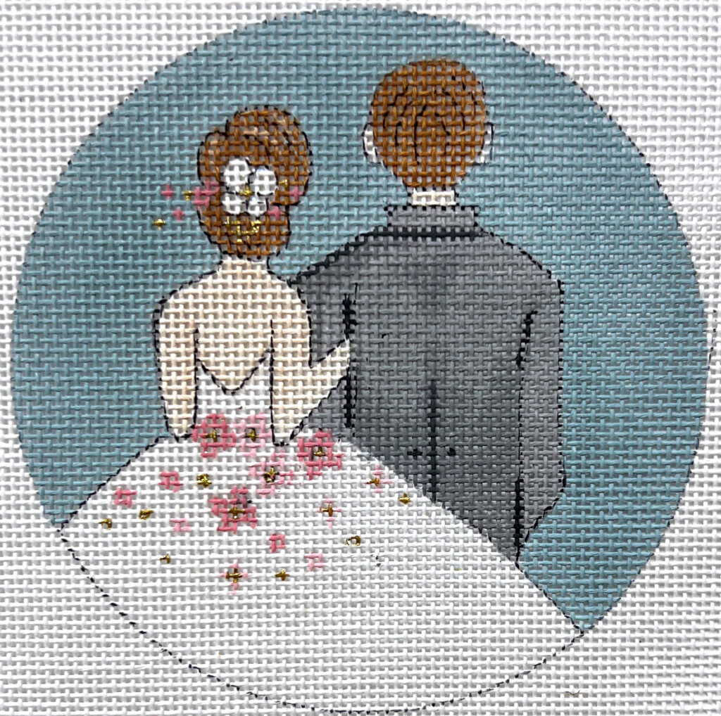 Bride & Groom X400 18 mesh hand painted by Alice Peterson Design Size: 4" round