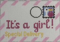 163 - It’s a girl, 18 mesh, Handpainted by Rachel Donley, Design Size: 3.5 x 5.5"