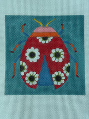 4877 Floral Beetle , 13 mesh, Handpainted by Alice Peterson, Design Size: 7" square