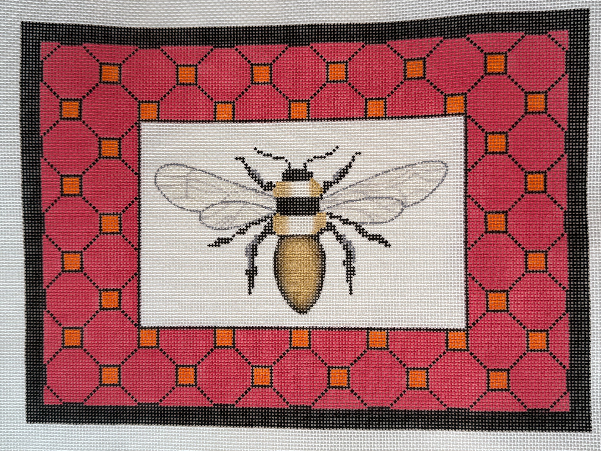 ALS-017 Bee on Pink and Orange , 13 mesh, Handpainted by Vallerie Needlepoint Gallery, Design Size: 13 x 9.5"