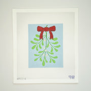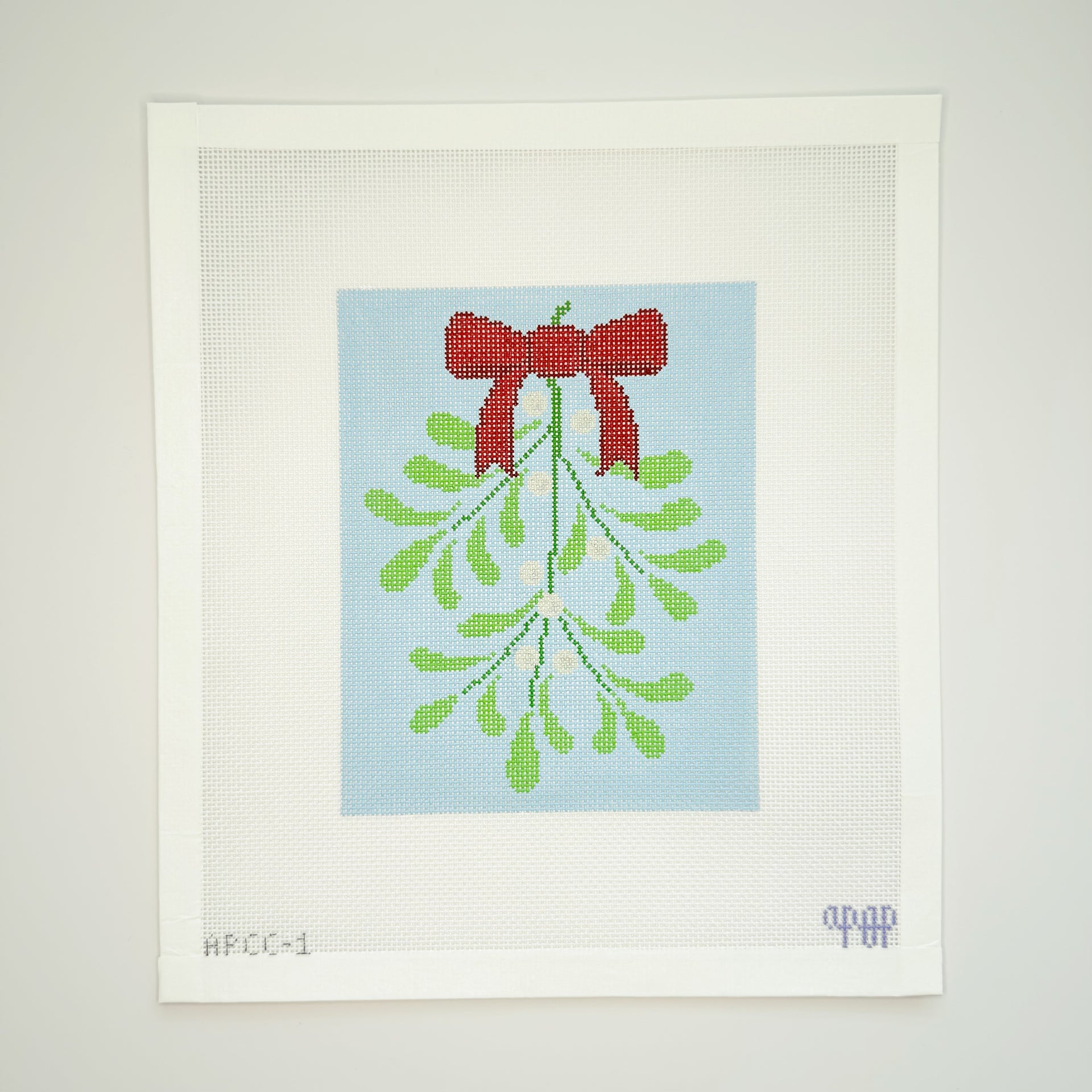 APCC1 Mistletoe Charts for Charity Canvas, 18 mesh, Handpainted by A Poore Girl Paints for Melissa Loves Needlepoint, Design size 5" wide by 6" tall.