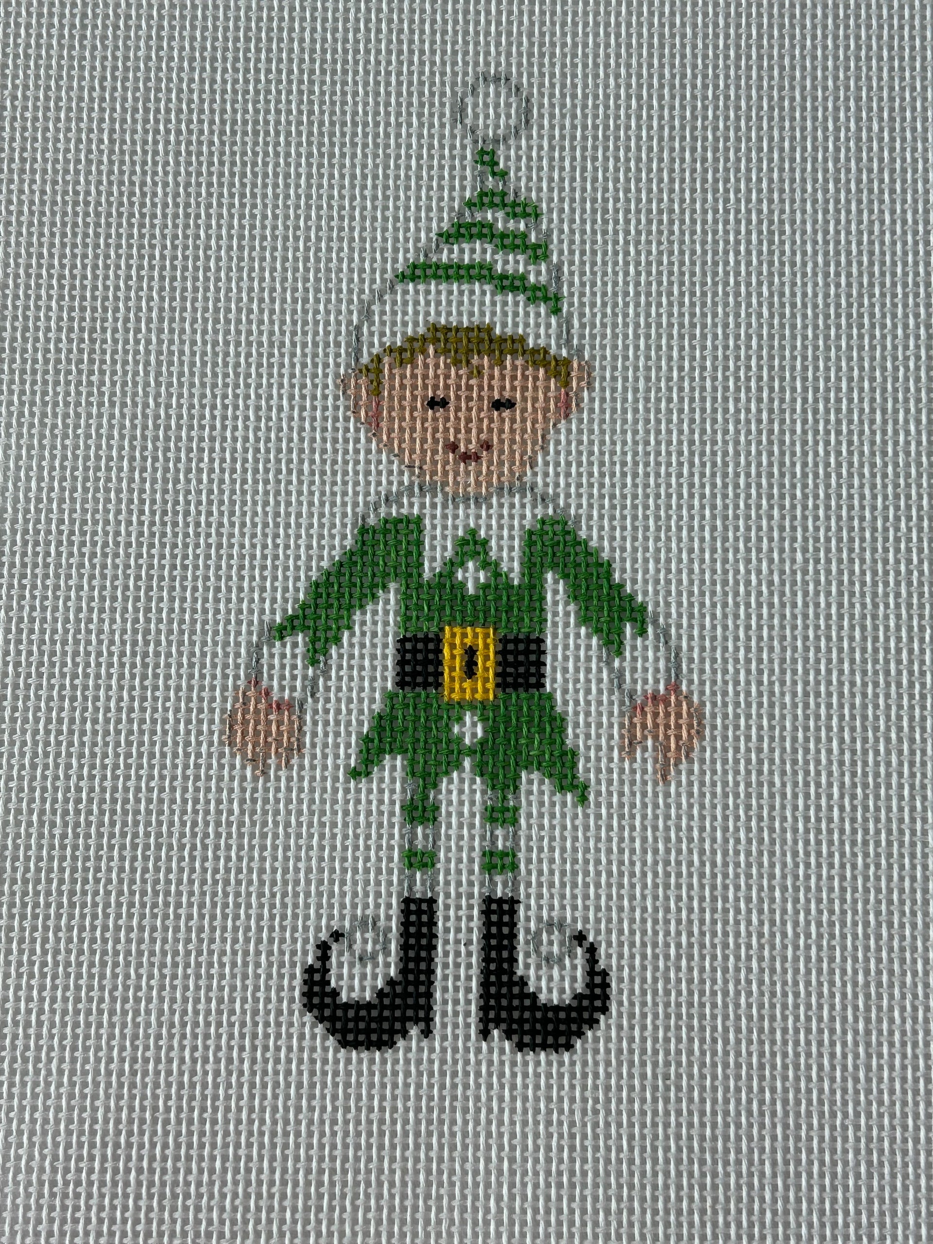ASIT462 Green Elf , 18 mesh, Handpainted by A Stitch In Time, Design Size: 2.5 x 5"