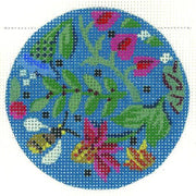 Folk Art Flowers round insert KC-KCBJ18, 18 Mesh, Handpainted by Kelly Clark, Design Size: 3.25" Round .