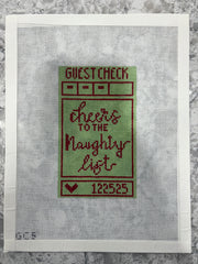 GC5 Guest Check - "Cheers to the Naughty List" Canvas - SE, 18 mesh, Handpainted by Officially Needlepoint, Design Size: