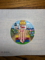 GE-GS210 New England Stitching Girl , 18 mesh, Handpainted by Alice Peterson, Design Size: 5" Round