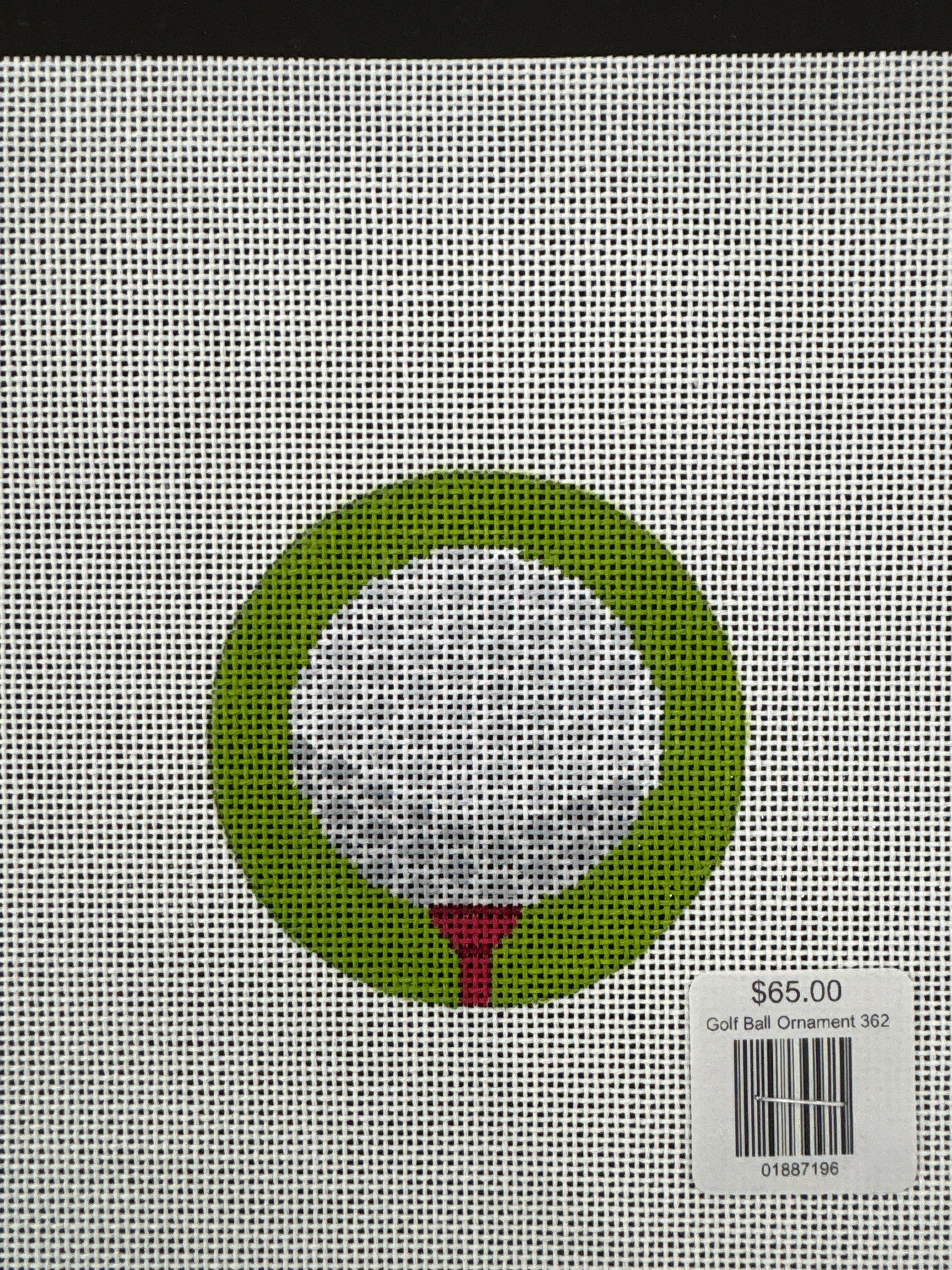 Golf Ball Ornament 362, 18 mesh, Handpainted by Needle Crossings, Design size " round