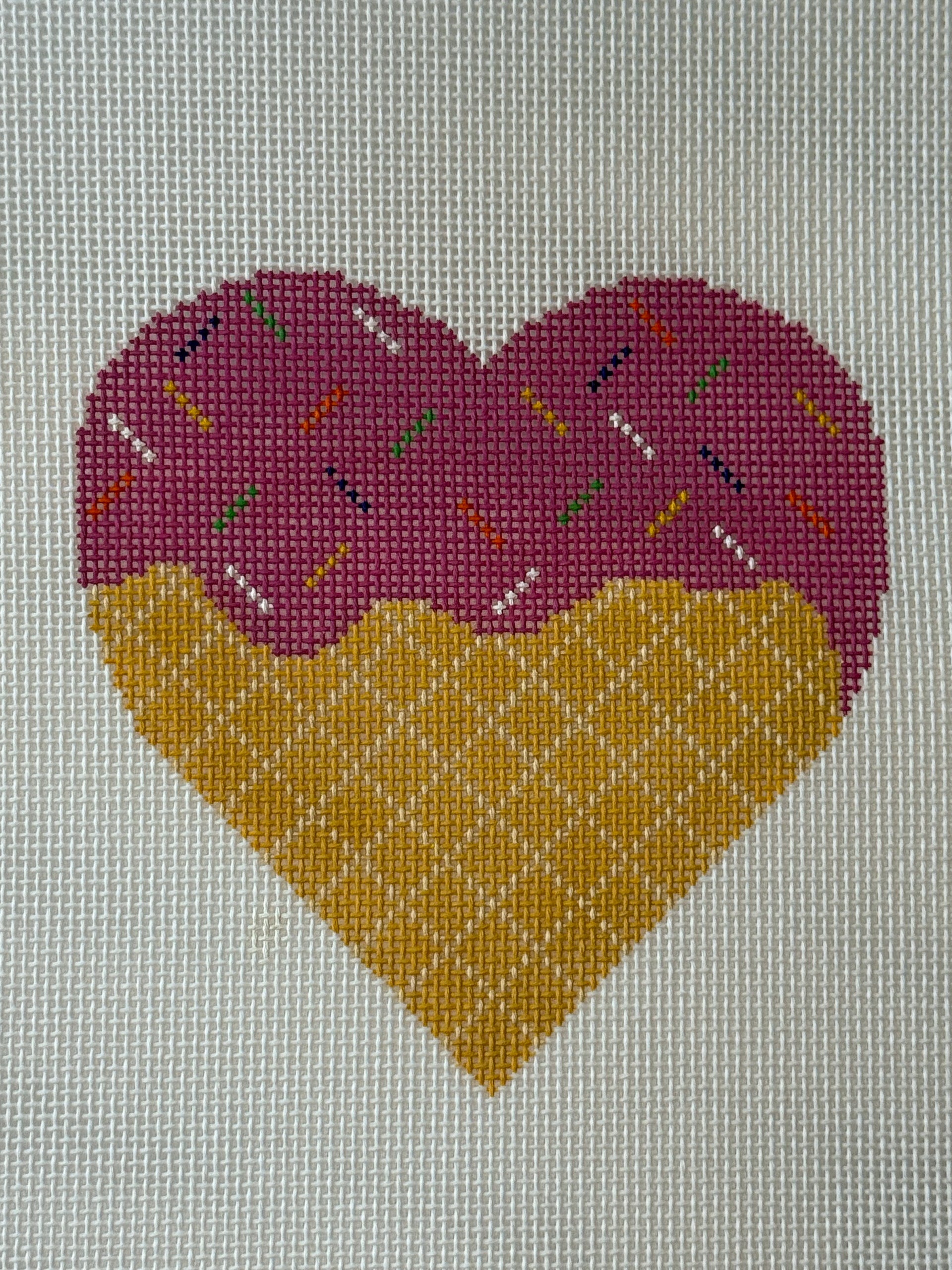 H-37 Ice Cream Heart , 18 mesh, Handpainted by Vallerie Needlepoint Gallery, Design Size: 4 x 4.25"