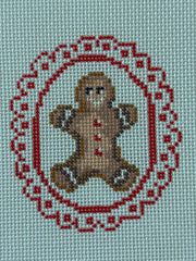 KCD-1964 Gingerbread Man Round , 13 mesh, Handpainted by KC Needlepoint Designers, Design Size: 3.75 x 4"