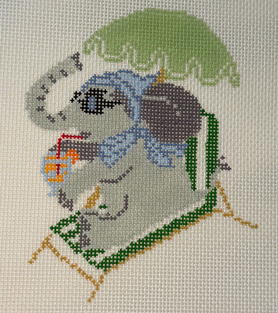 KCD2873 La Dolce Vita Riviera Elephant, 18 mesh, Handpainted by KC Needlepoint Designers, Design Size: 4 x 5"