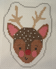 KCD-2888 Rudolph Face Canvas , 13 mesh, Handpainted by KC Needlepoint Designers, Design Size: 4 x 5"