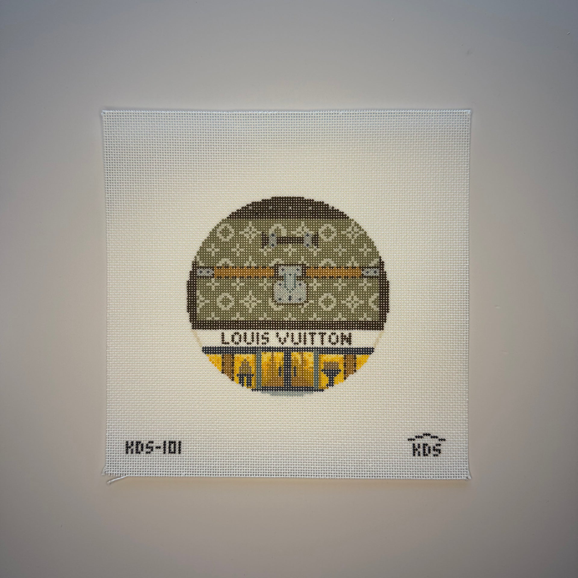 KDS-101 Louis Vuitton Round , 18 mesh, Handpainted by The Gingham Stitchery, Design Size: 4.5" round