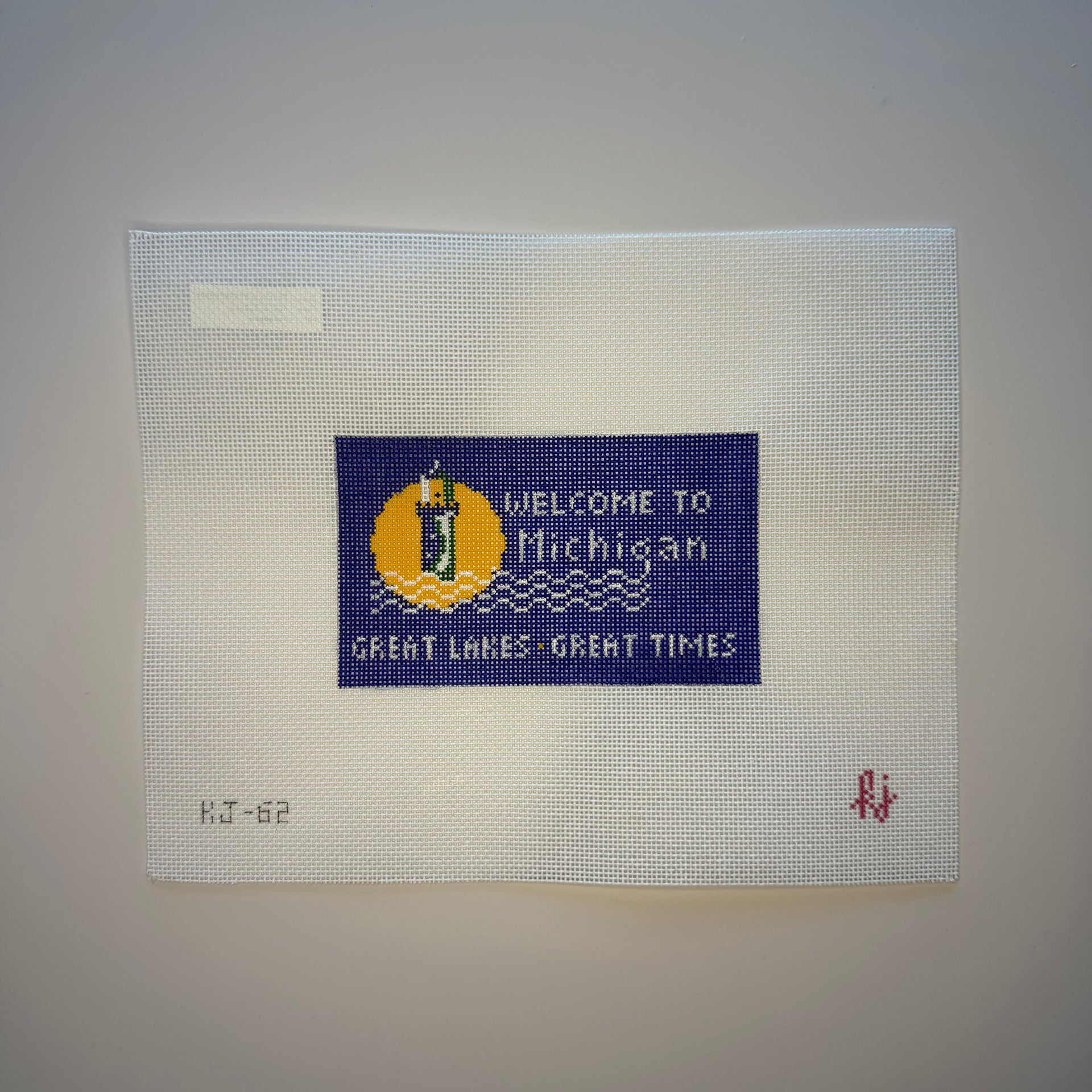 KJ-62 Michigan State Sign , 18 mesh, Handpainted by The Gingham Stitchery, Design Size: 5 x 3"
