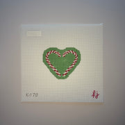 KJ-70 Candy Cane Heart 2 , 13 mesh, Handpainted by The Gingham Stitchery, Design Size: 4 x 3.5"