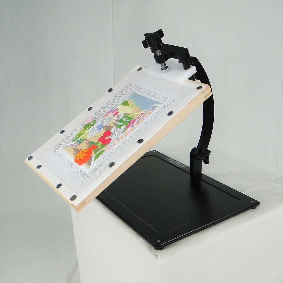 The lap stand works fabulously for those that stitch in their laps or at a table. Keep in mind that if using in your lap, you will be limited to smaller pieces - depends on the size of your own lap!