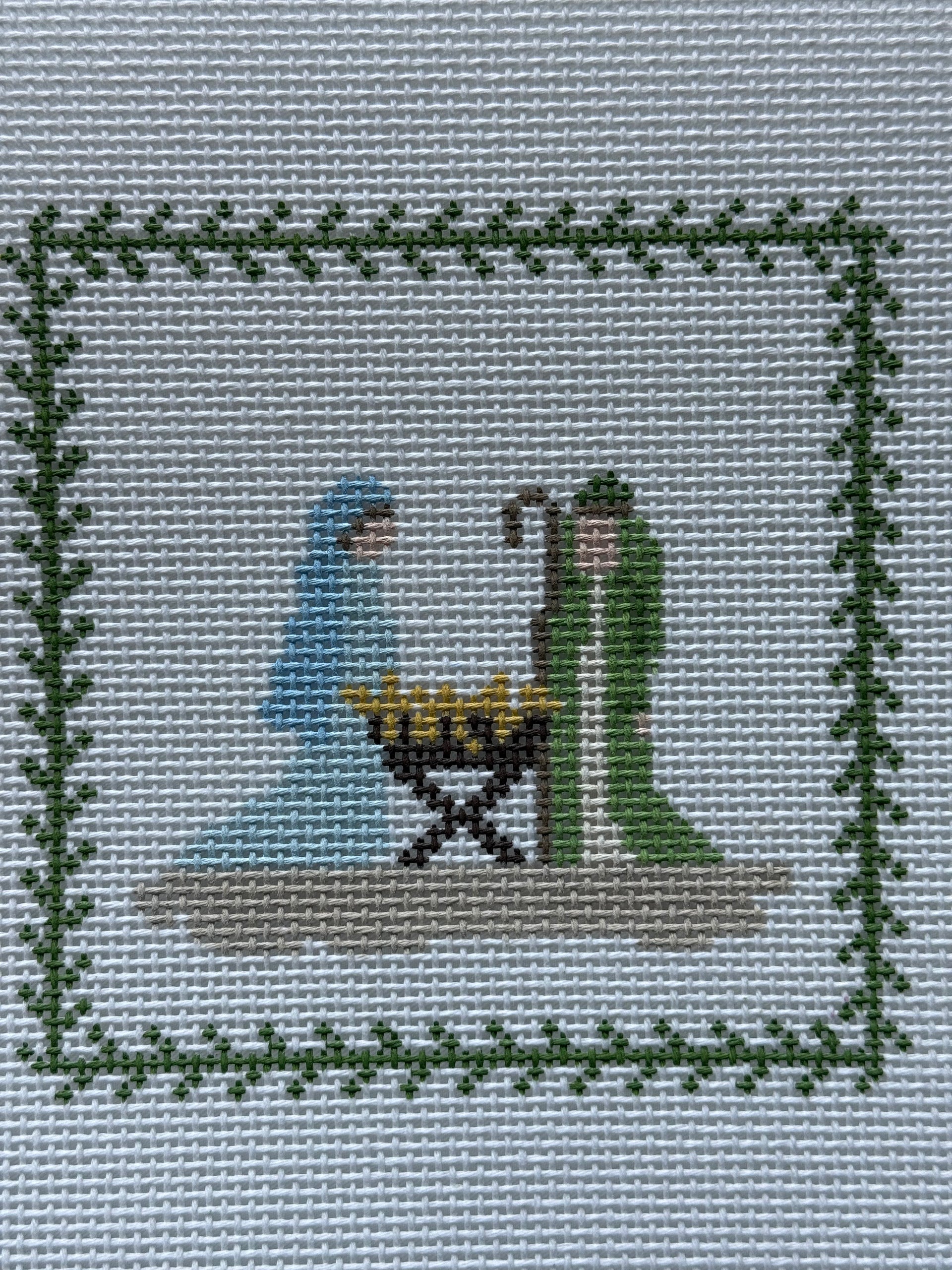 MCD-21 Holy Family Square , 13 mesh, Handpainted by Walker's Wholesale, Design Size: 4.75" Square