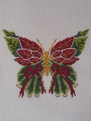 Poinsettia Butterfly Ornament IKS-2093A , 18 mesh, Handpainted by Initial K Studio, Design Size: 5 x 4"