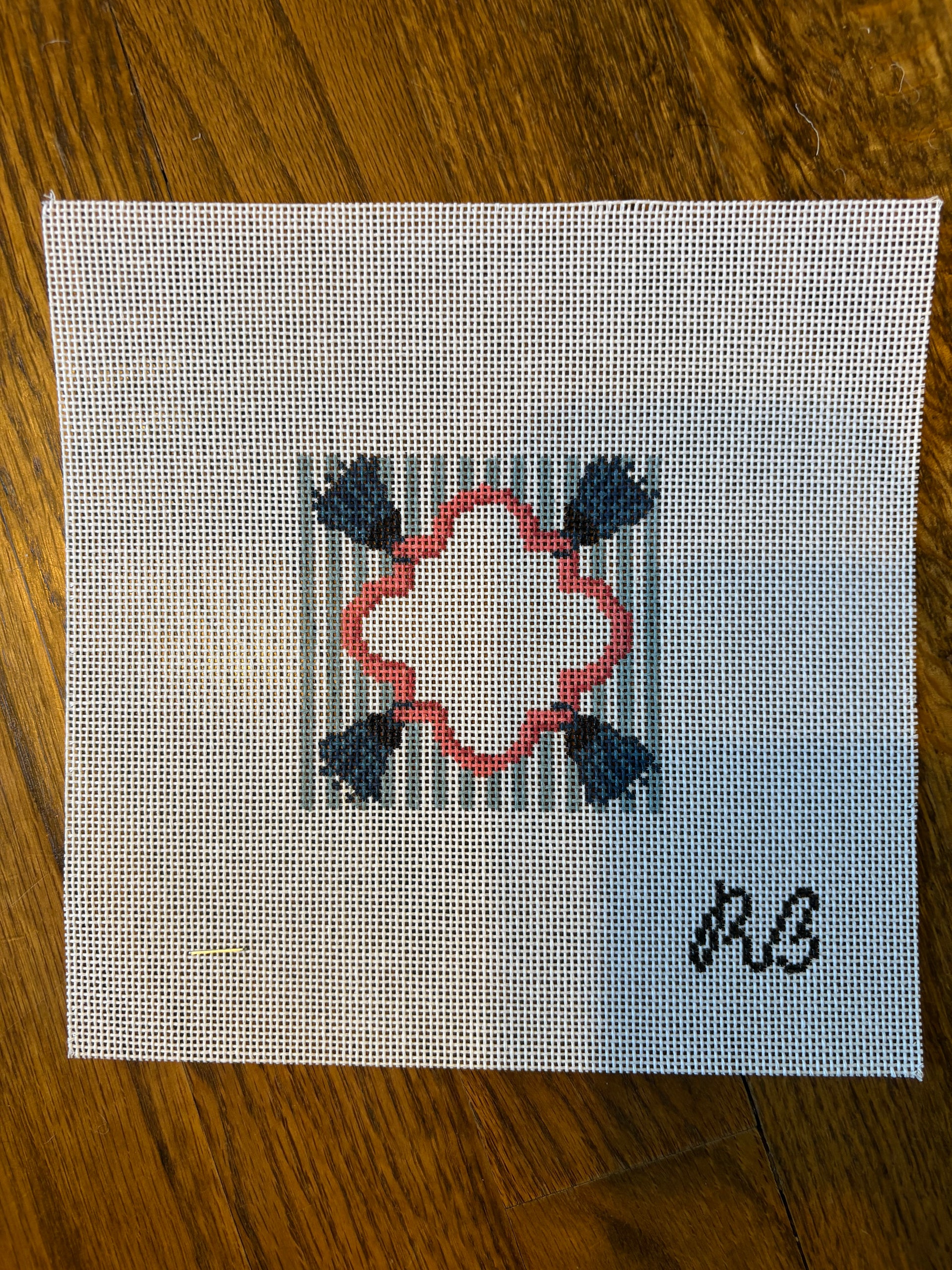 RR139-BS Blue Striped Tassels , 18 mesh, Handpainted by Rachel Barri Designs, Design Size: 3 x 3"