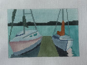Sailboats , 13 mesh, Handpainted by Blue Ridge Stitchery, Design Size: 7 x 5"