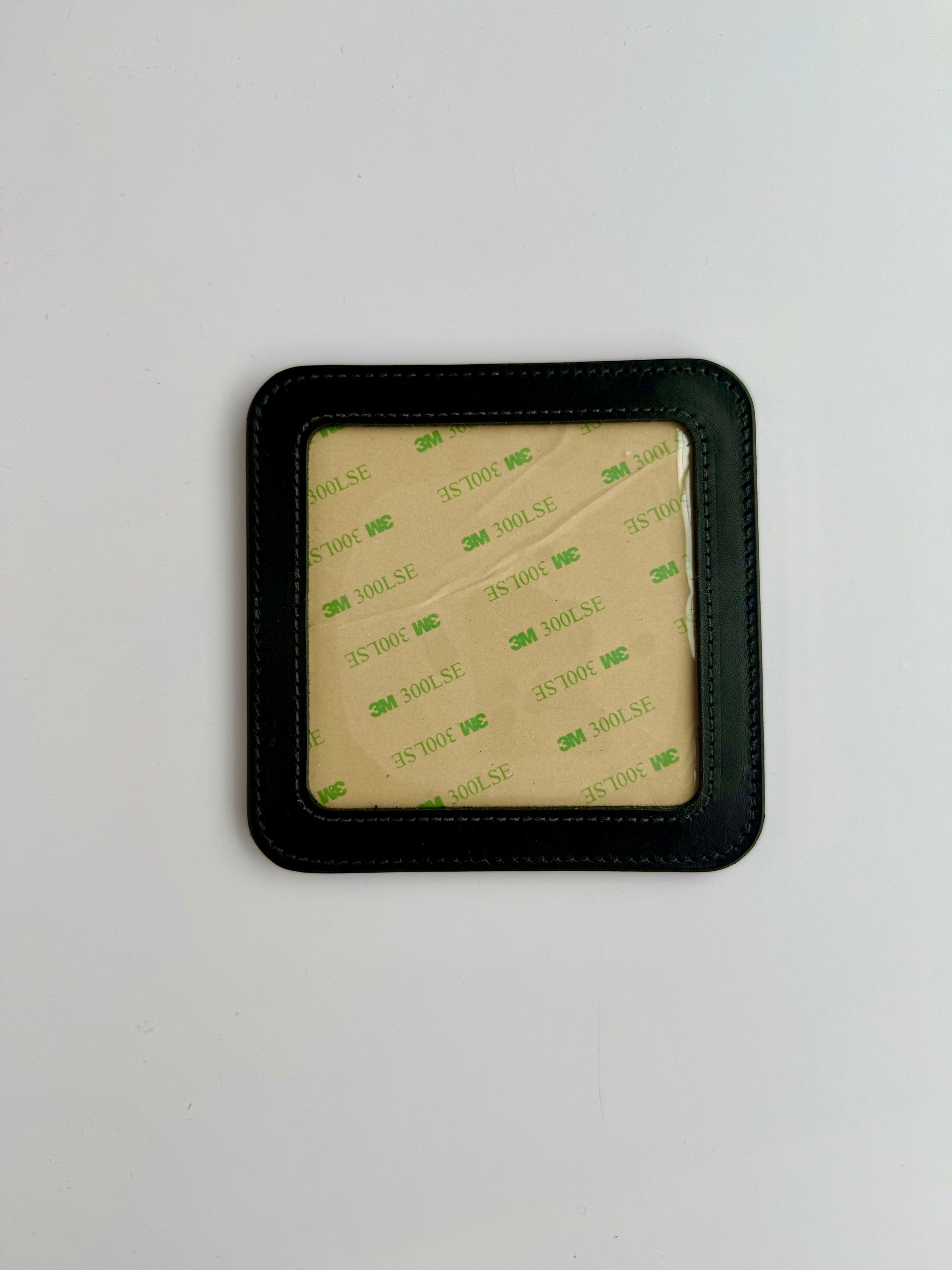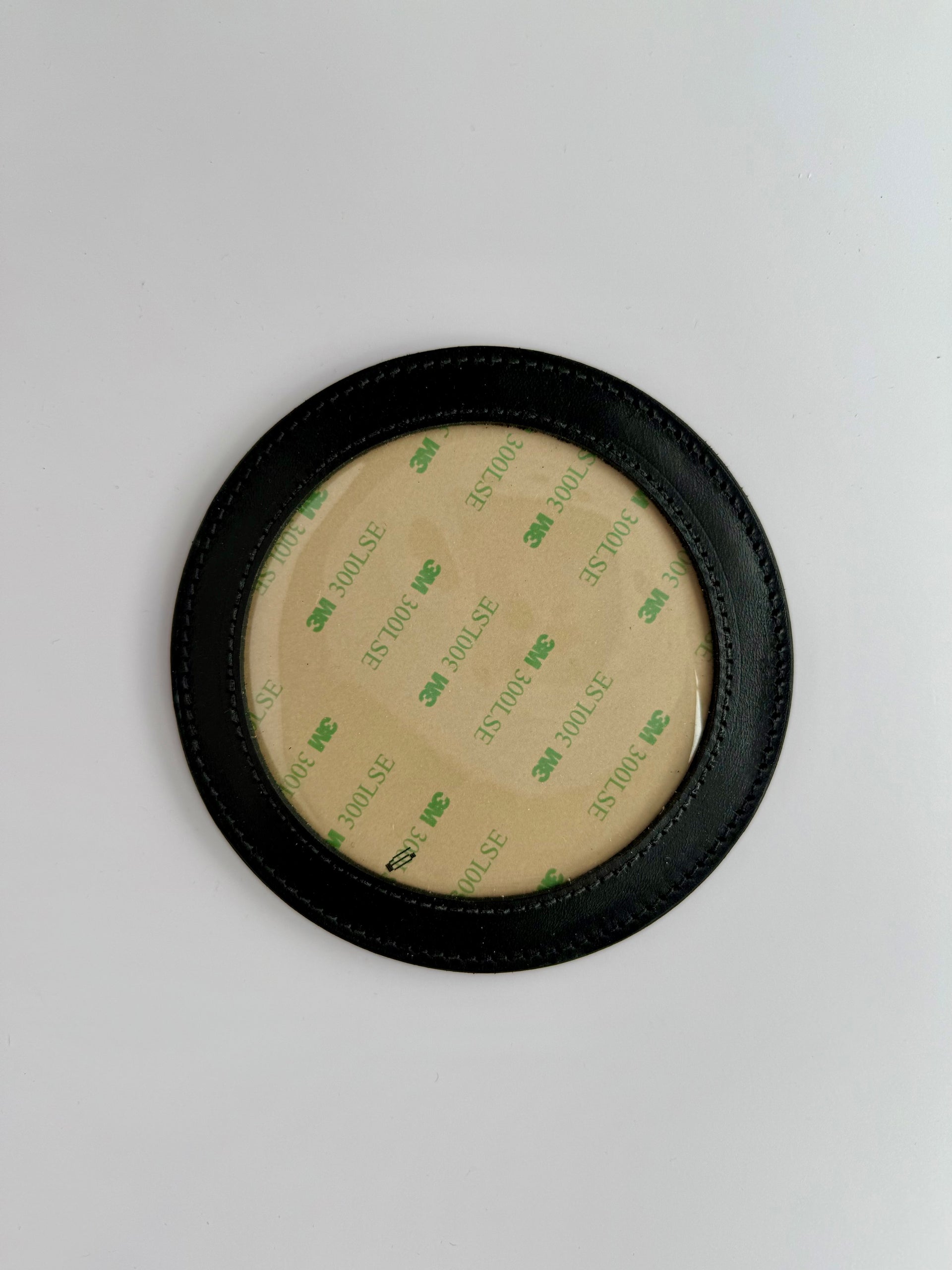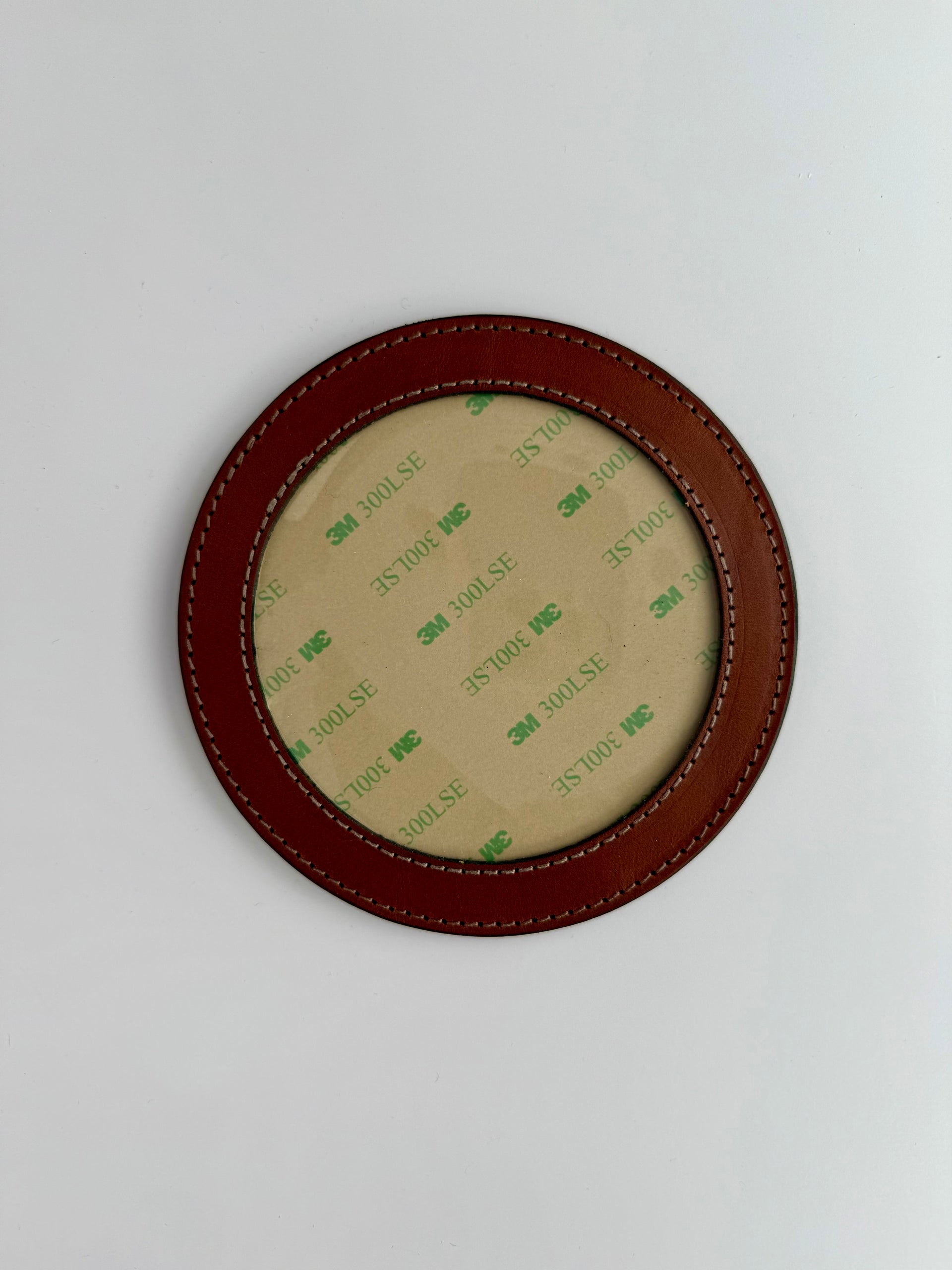 Self Finishing Leather Coaster from Clayton & Crume.  Available in 3 colors, and 2 shapes.  Acrylic insert to protect your needlepoint.