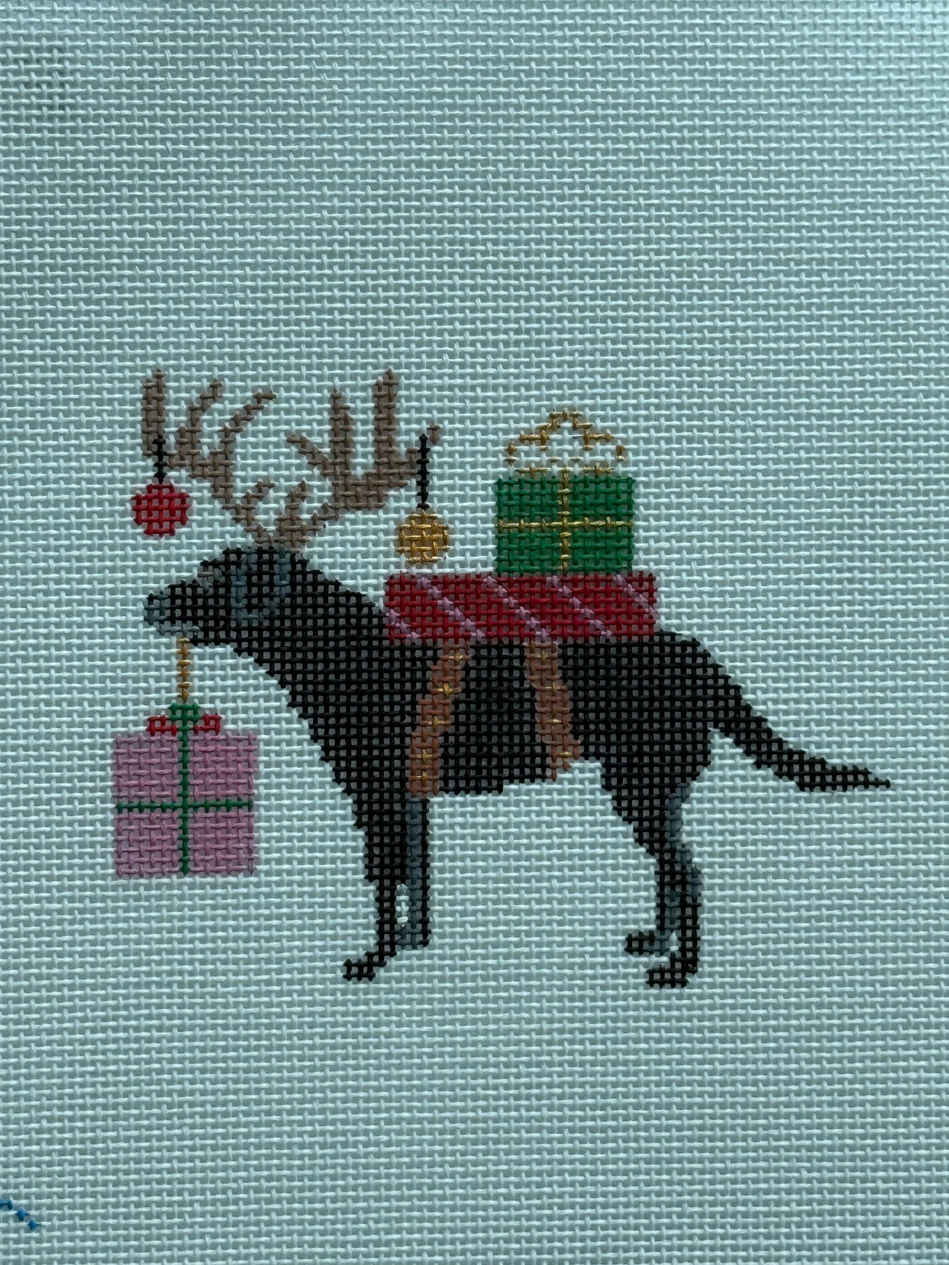 Special Delivery - Black Lab , 18 mesh, Handpainted by Blue Ridge Stitchery, Design Size: 4 x 3.25"