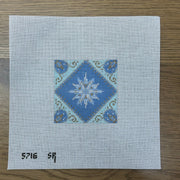 SR5716 Blue, Silver Gold Star, 3" Ornament - TS, 18 mesh, Handpainted by Susan Roberts, Design Size: 3 x 3"