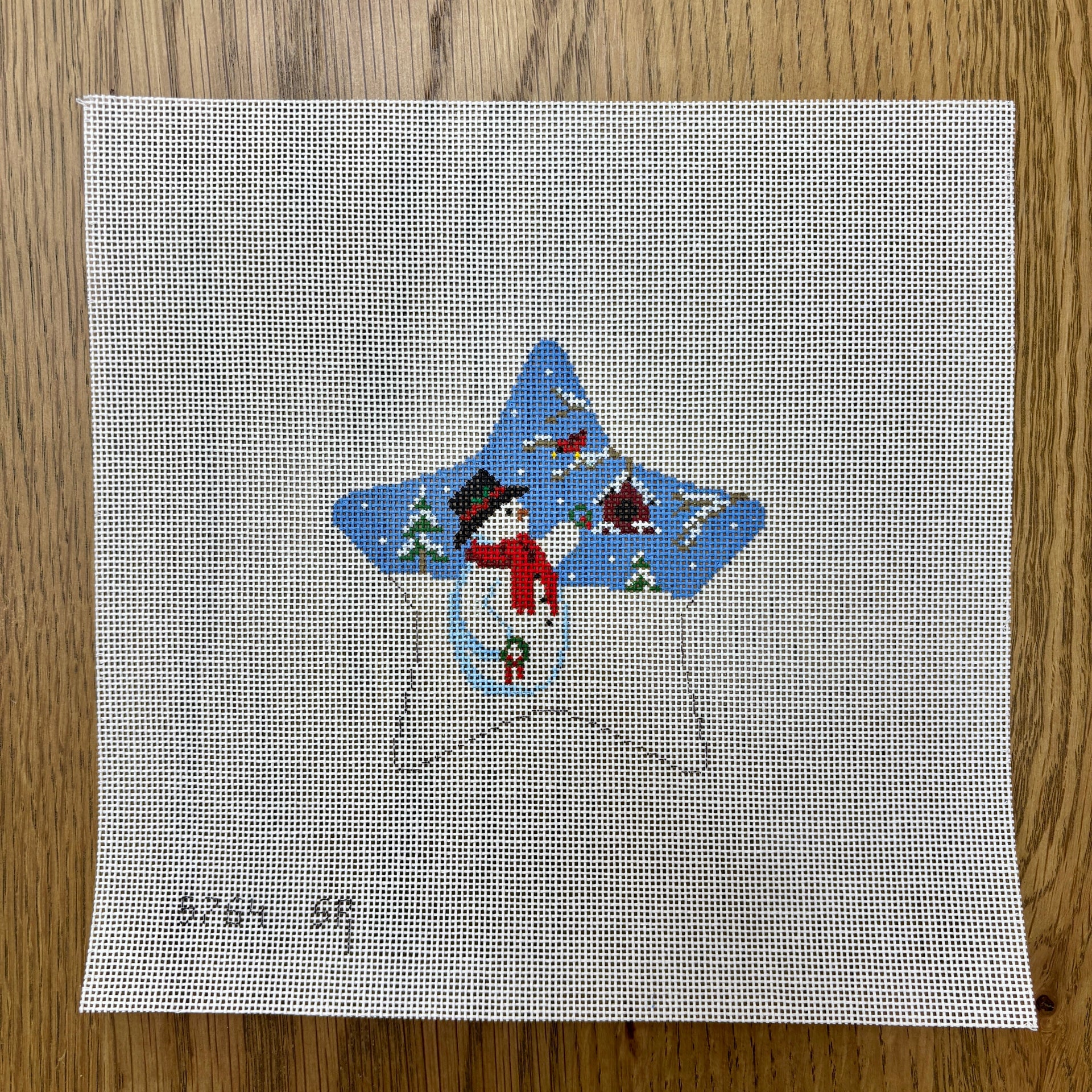SR5764 Star, Snowman with Wreaths - TS, 18 mesh, Handpainted by Susan Roberts, Design Size: 4 x 4.25"