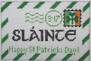 St. Patrick's Letter RD151, 18 mesh, Handpainted by Rachel Donley, Design Size: 3.5 x 5.5"