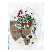 Swiss Mountain Cow PR-241, 18 mesh, Handpainted by Pip and Roo for Stitch Tent, Design SIze: 5.5 x 4.5"