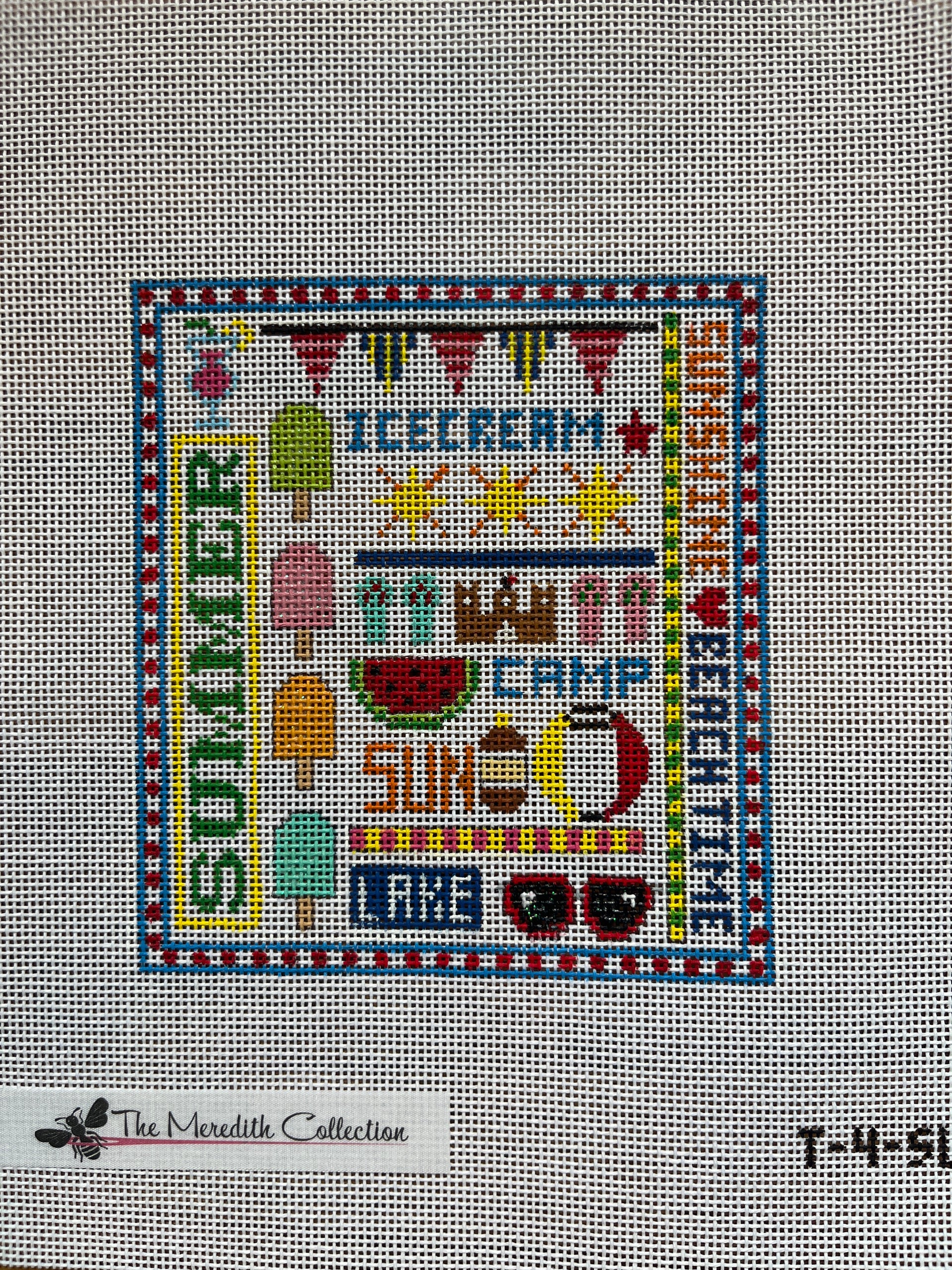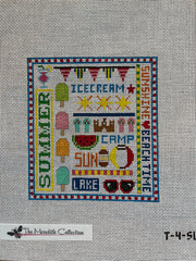 T-4-SU Summer Sampler, 18 mesh, Handpainted by The Meredith Collection, Design Size: 4.5 x 5"