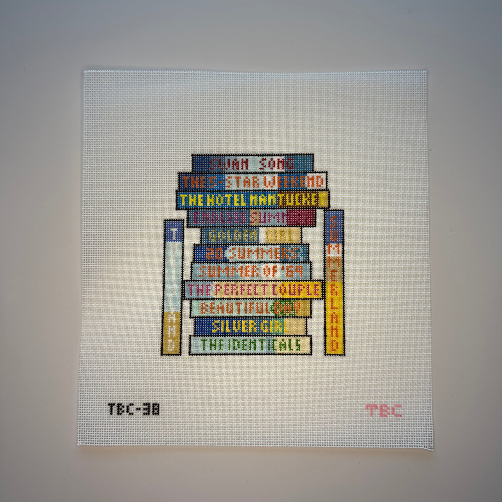 TBC-38 Elin Hilderbrand Summer Book Stack , 18 mesh, Handpainted by Mopsey Designs, Design Size: 4.5 x 5"
